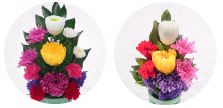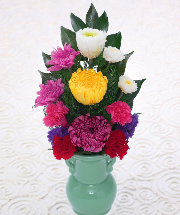 豊かなカラーバリエーションが創り出す現代的な仏花です。